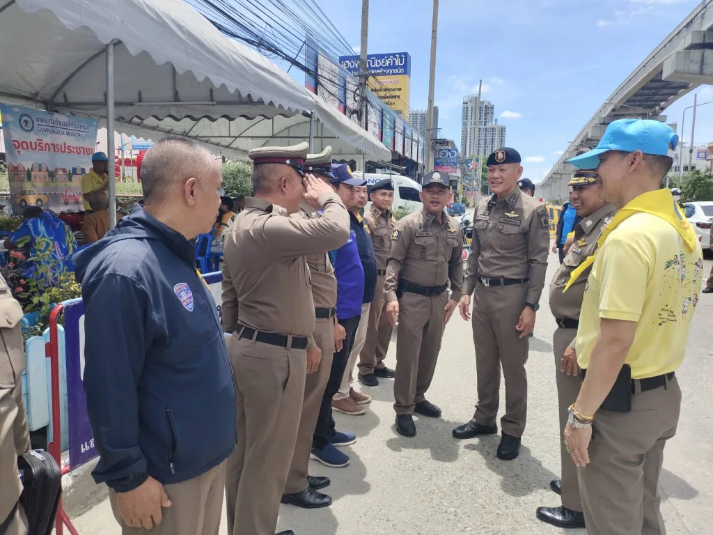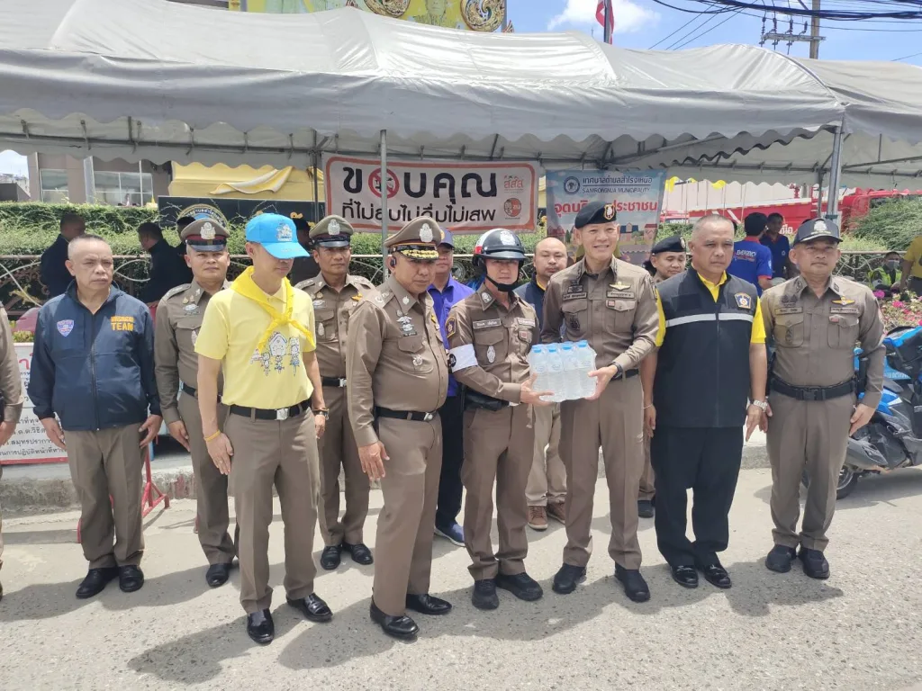 🔺พล.ต.ต.ไพโรจน์ สุขรวยธนโชติ รอง ผบช.ภ.1 , พล.ต.ต.วิชิต บุญชินวุฒิกุล ผบก.ภ.จว.สมุทรปราการ , พล.ต.ต.ภัคพงศ์ สายอุบล ผบก.อก.ภ.1 พ.ต.อ.ชูตระกูล ยศมาดี รอง ผบก.ภ.จว.สมุทรปราการ , พ.ต.อ.ยศวัจน์ งามสง่า รอง ผบก.ภ.จว.สมุทรปราการ ตรวจเยี่ยม จุดตรวจกวดขันวินัยการจราจรและจุดตรวจวัดแอลกอฮอล์ เทศกาลสงกรานต์