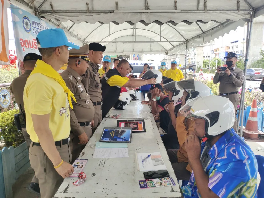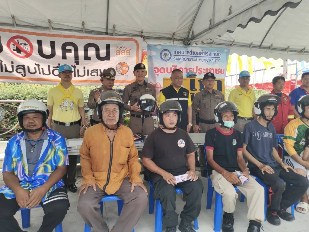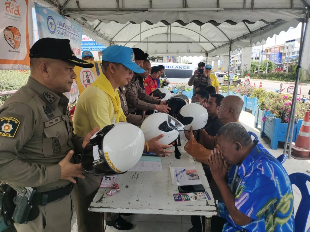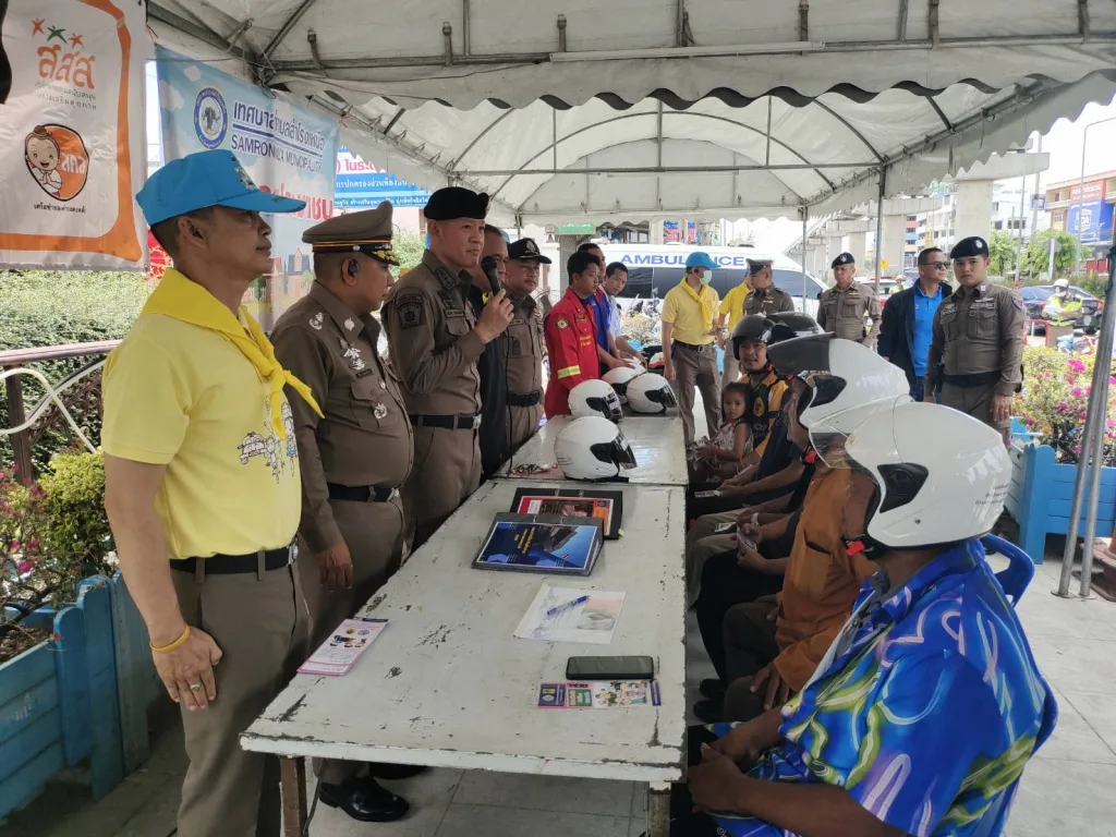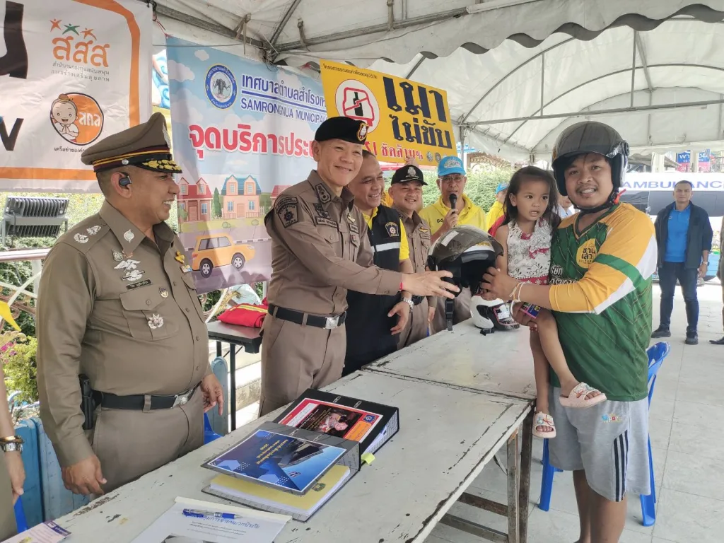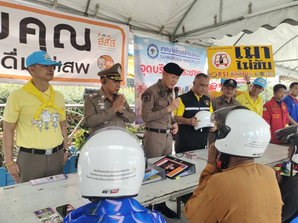 🔹พร้อมด้วยข้าราชการตำรวจ สภ.สำโรงเหนือ จนท.ประจำด่าน เทศบาล ตำบลสำโรงเหนือ รอรับการตรวจเยี่ยม และ ร่วมแจกแผ่นพับใบปลิว การรณรงค์ขับขี่ปลอดภัย แจกหมวกนิรภัย ห้วงเทศกาลสงกรานต์ ประจำปี 2568