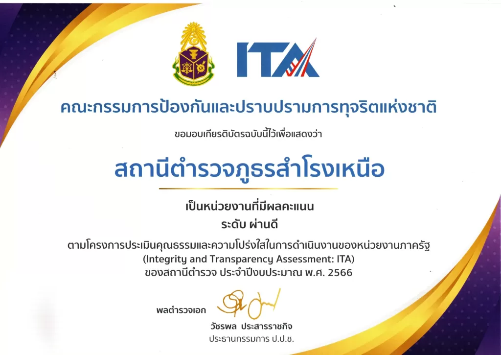 (Integrity and Transparency Assessment : ITA) ของ สถานีตำรวจ ประจำปีงบประมาณ พ.ศ.2566