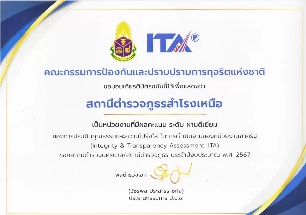 POLICE-ITA การประเมินคุณธรรมและความโปร่งใสในการดำเนินงานของหน่วยงานภาครัฐ (Integrity and Transparency Assessment : ITA) ของ สถานีตำรวจ ประจำปีงบประมาณ พ.ศ.2567